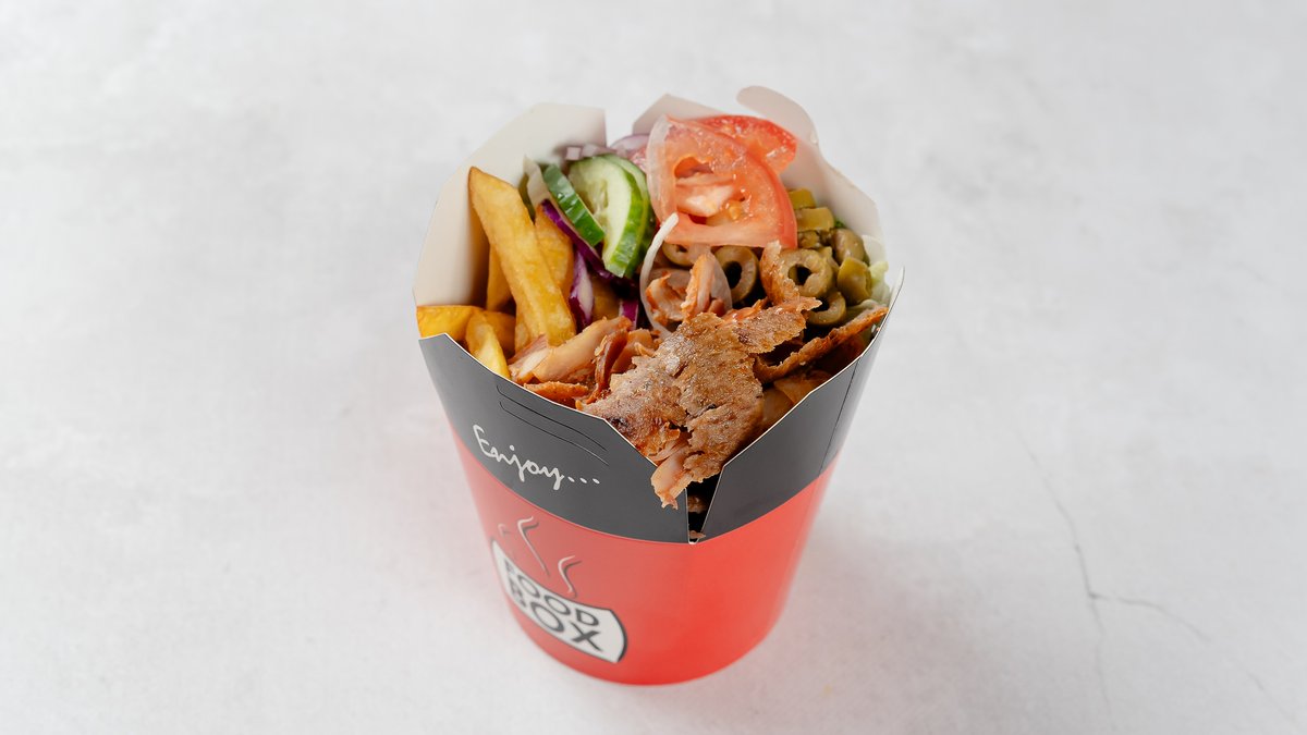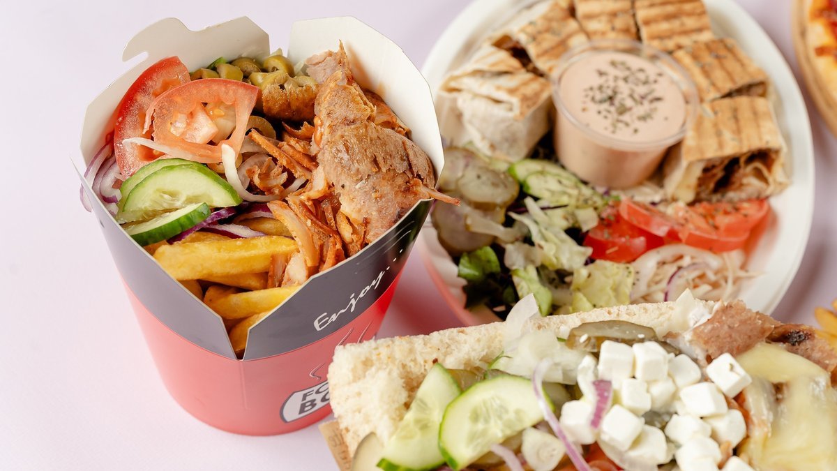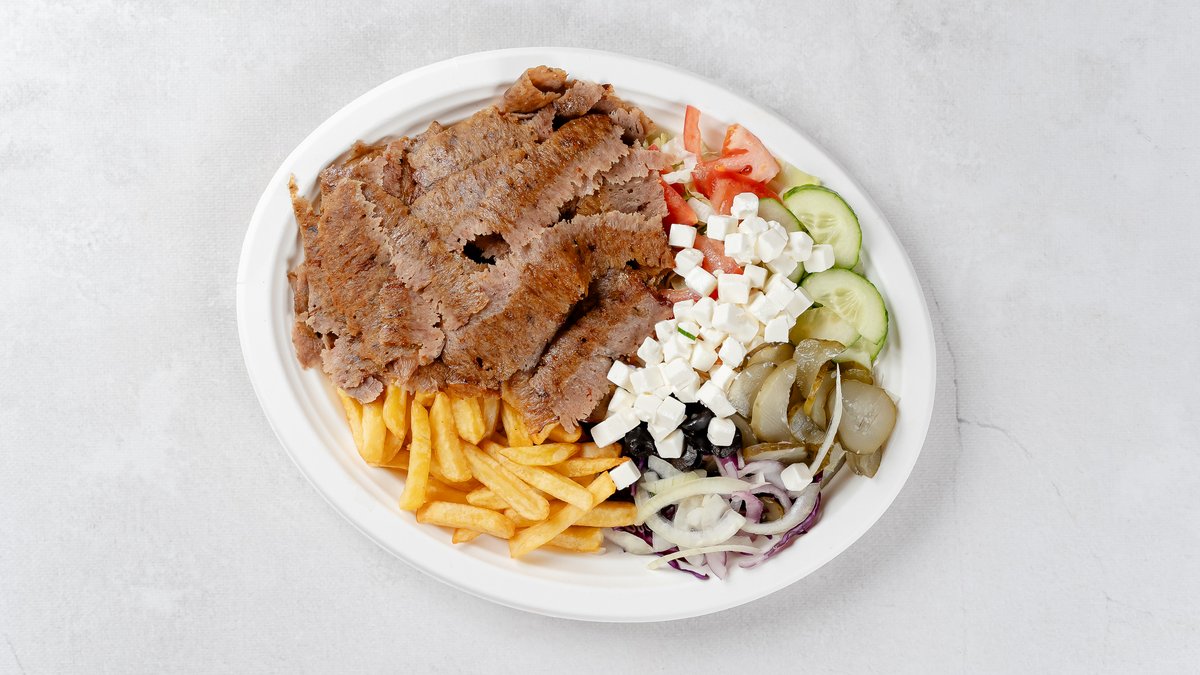Mięso do wyboru, frytki, ser feta, surówka, sosy