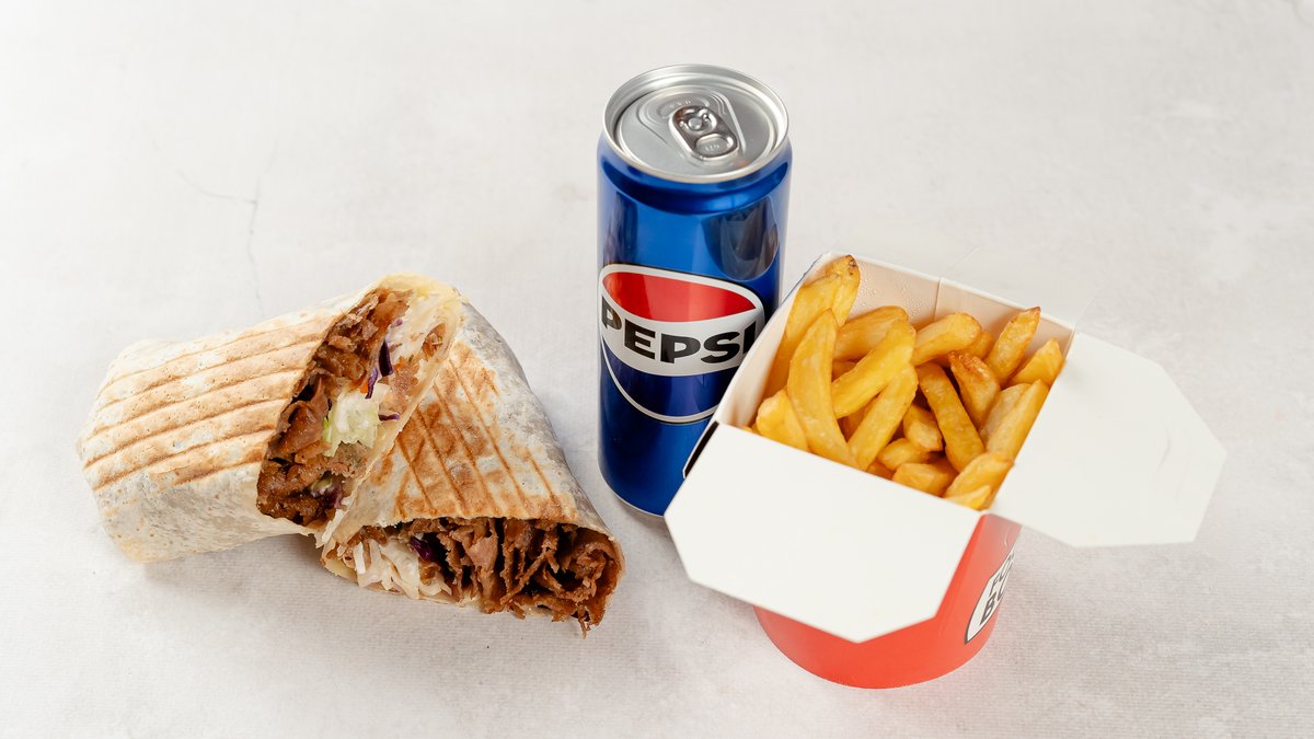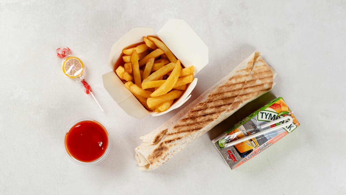 Lawasz kebab + frytki + napój