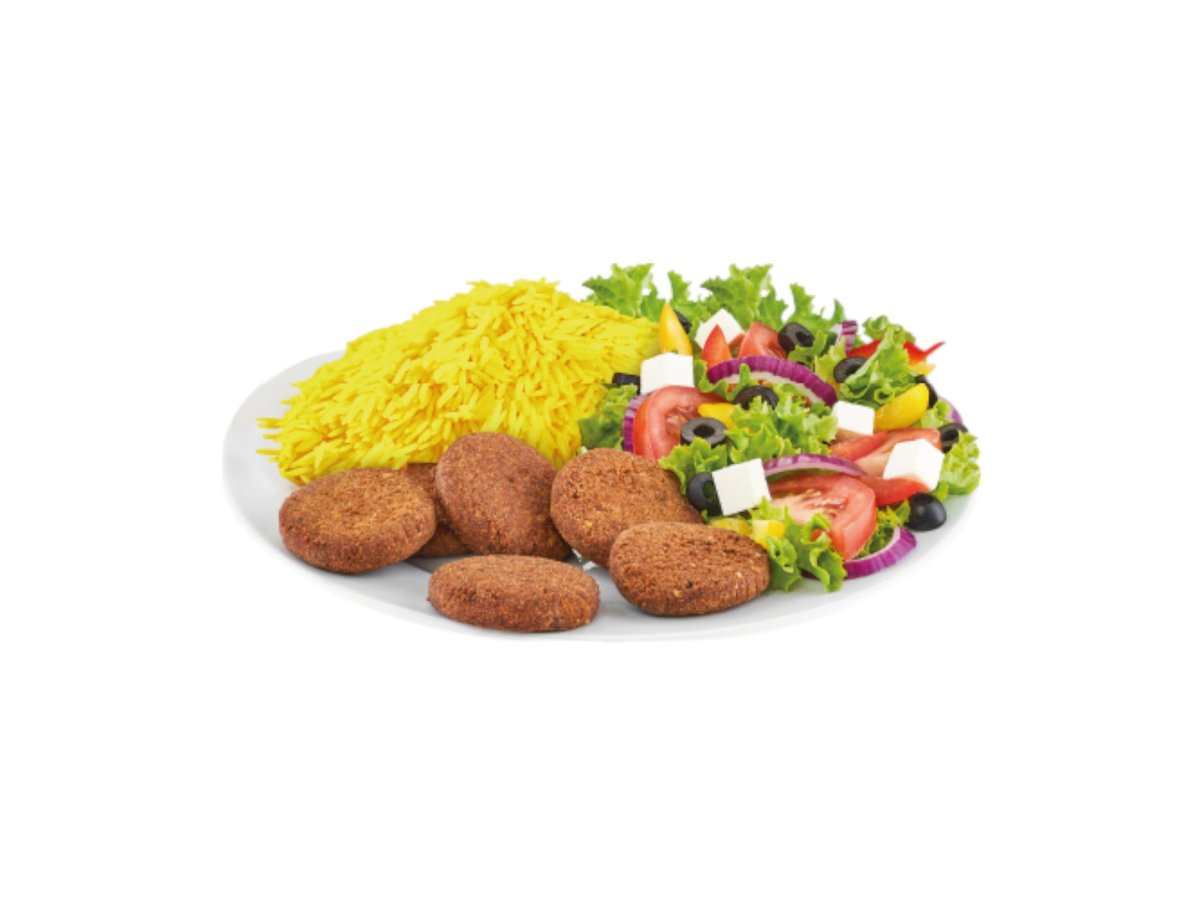 Falafel, ryż, surówka, sosy