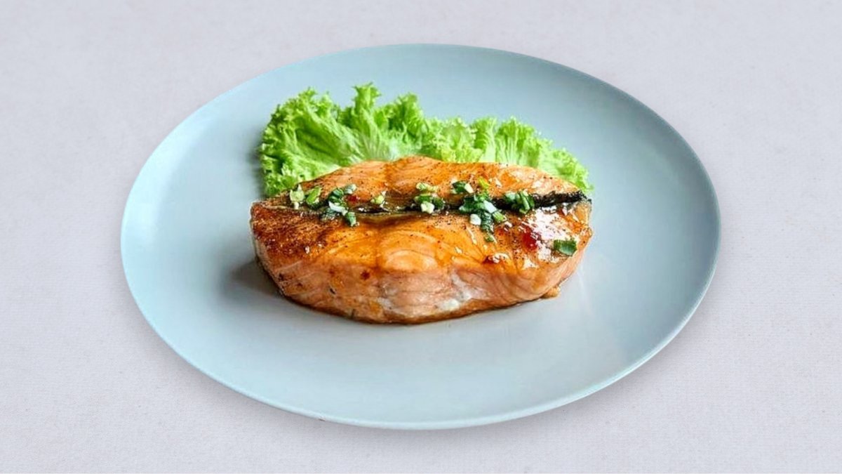 łosoś 200 g, sos słodko-ostry, świeże zioła