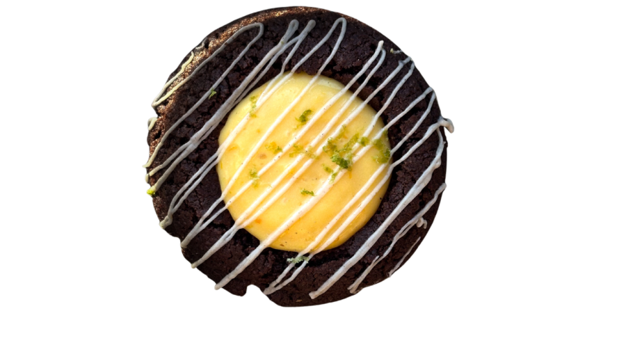 Chrupiąco miekkie ciastko z kakao i cynamonem, w środku pomarańczowy curd, skorka z limonki oraz lukier cynamonowy.