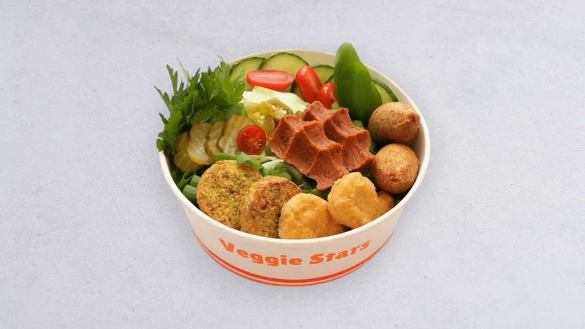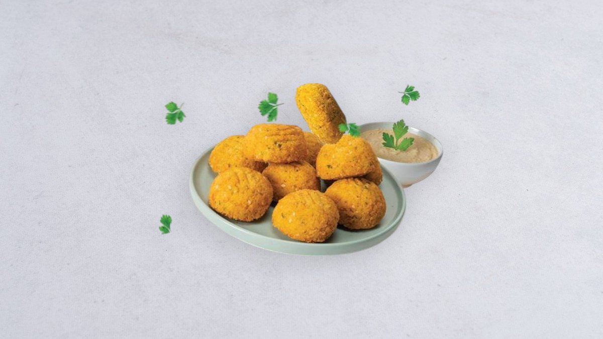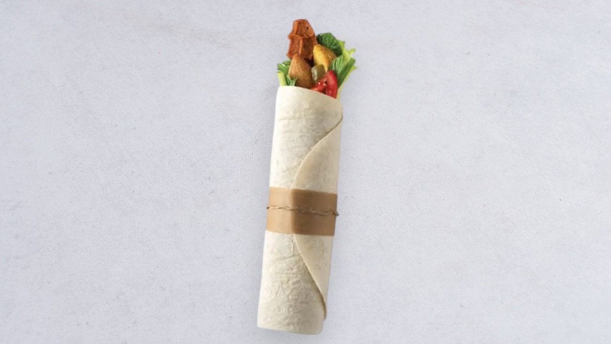 Podawane na gorąco, Falafel, falafil, kibbeh, çiğköfte, wegański ser cheddar, fasola, kukurydza, pomidor, pikle, sałata, cytryna, sosy