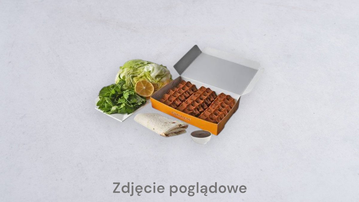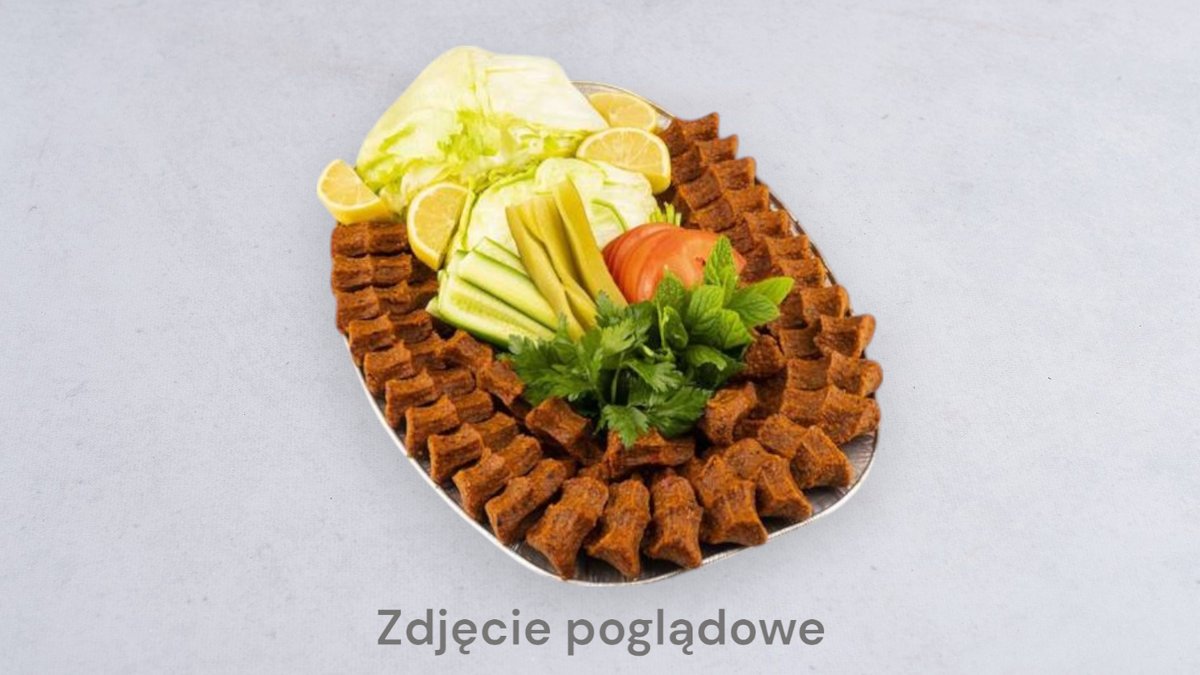 40 szt çiğköfte, opakowania sałat - cytryna, 5 szt. lavas, sos granata (Çiğköfte to tradycyjna, wegetariańska przekąska przygotowana z bulguru i wielu zdrowych przypraw, bogata w witaminy i błonnik, podawana na zimno.)