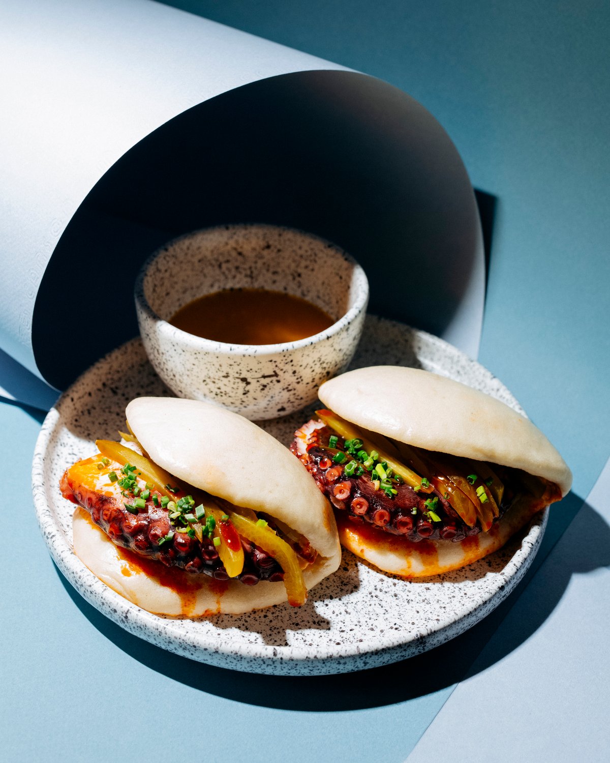 Bao z ośmiornicą i mango