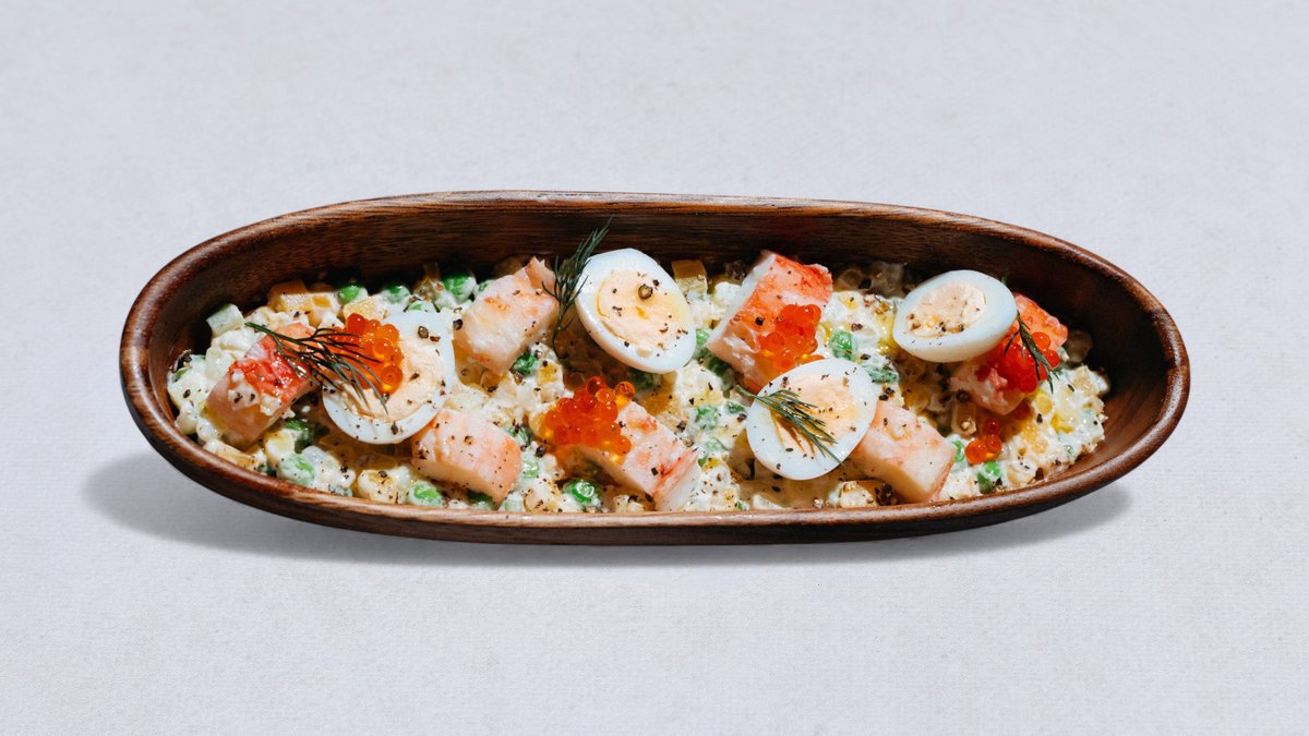 Sałatka Olivier z królewskim krabem i kawiorem