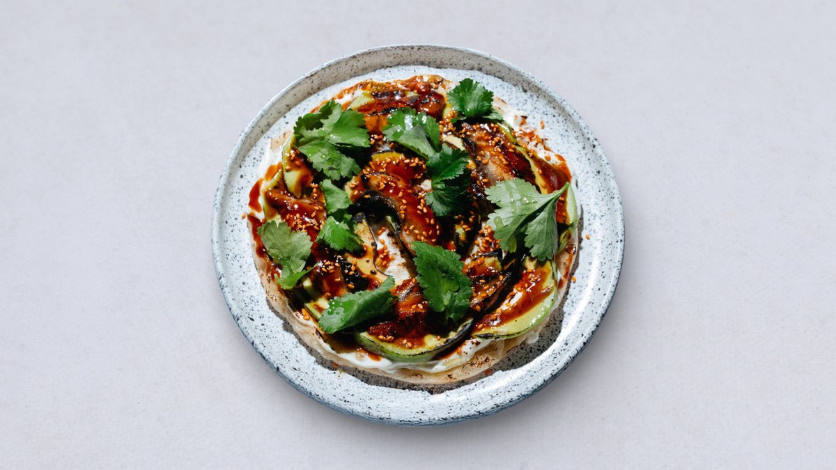 Flatbread, kremowy serek, awokado, węgorz, sos unagi, kolendra, oliwa z oliwek, sezam kimchi.