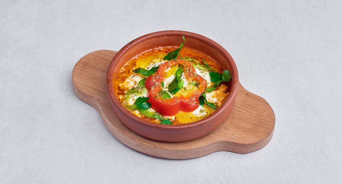 Pieczony w piekarniku ser feta z pomidorami, pikantnymi papryczkami, oregano i oliwą z oliwek