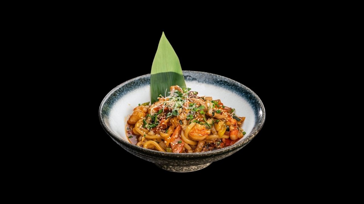 Wegański ramen, trawa morska, fasolka edamame. Bez zupy miso