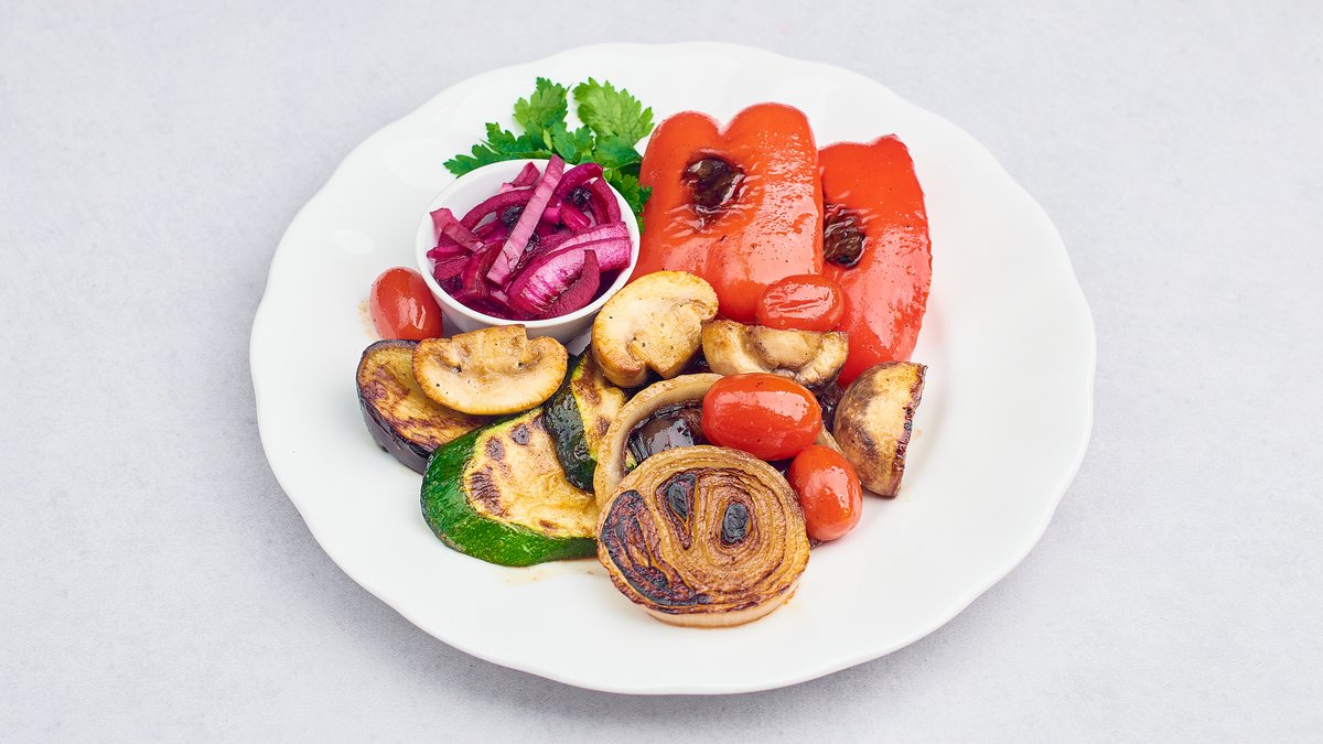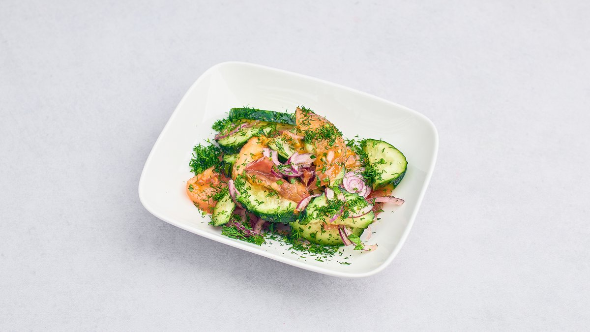 (Pomidor, ogórek, сzerwona cebula, pietruszka/koperek, oliwa z oliwek, sól, pieprz.)