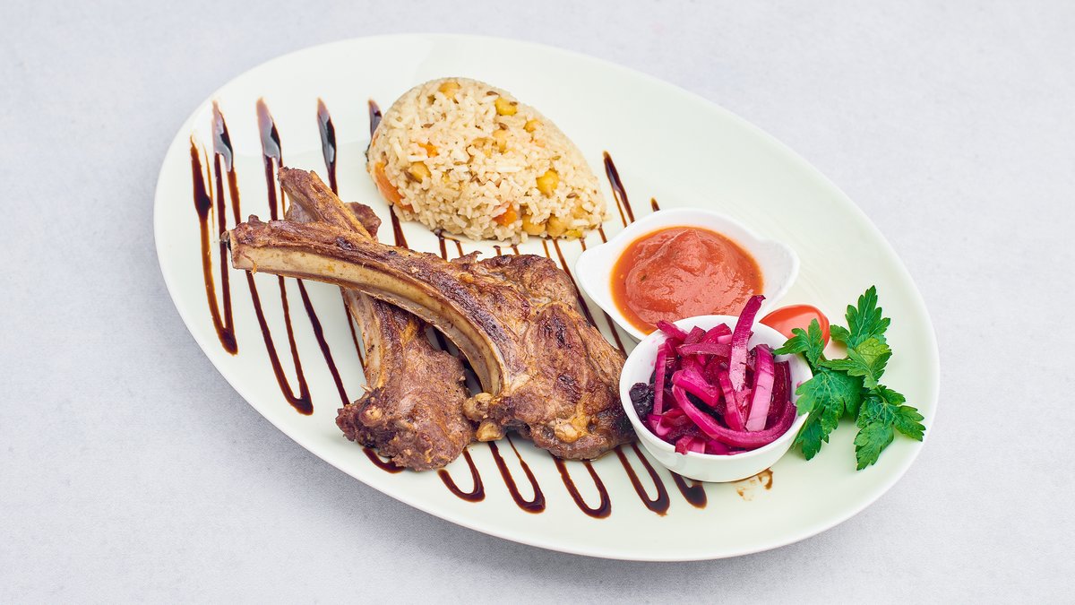 Dwa tradycyjne placki z ciasta przaśnego z mieloną baraniną, cebulą i przyprawami. Przygotowane na gorącej suchej patelni bez oleju. Podane z sosem jogurtowym.