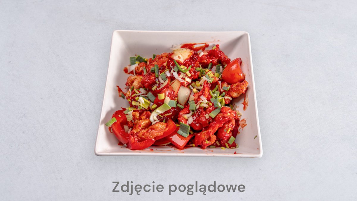 Aromatyczne kawałki jagnięciny w ostro-kwaśnym sosie. Zdjęcie poglądowe