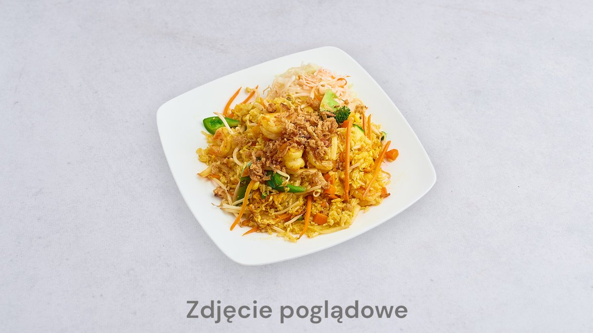 Krewetki w sosie kokosowym z curry. Zdjęcie poglądowe