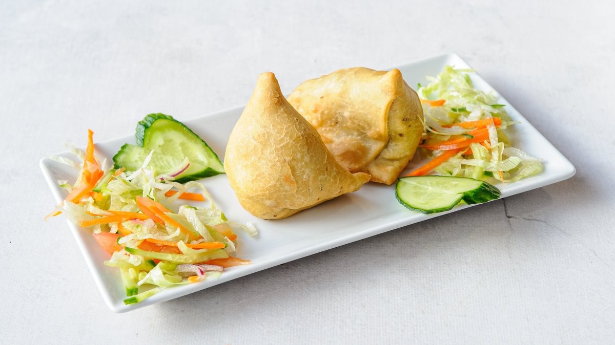 2 szt. Chrupiące pierożki nadziewane opiekanymi ziemniakami i zielonym groszkiem. Zdjęcie poglądowe