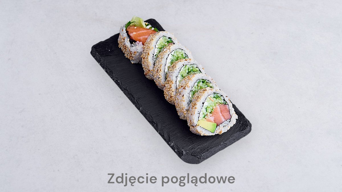 California maki łosoś, gua bao boczek, zupa miso, chahan – ryż z kurczakiem, jajkiem i warzywami, sałatka wakame