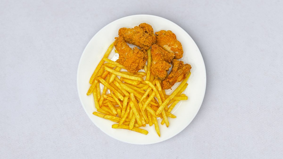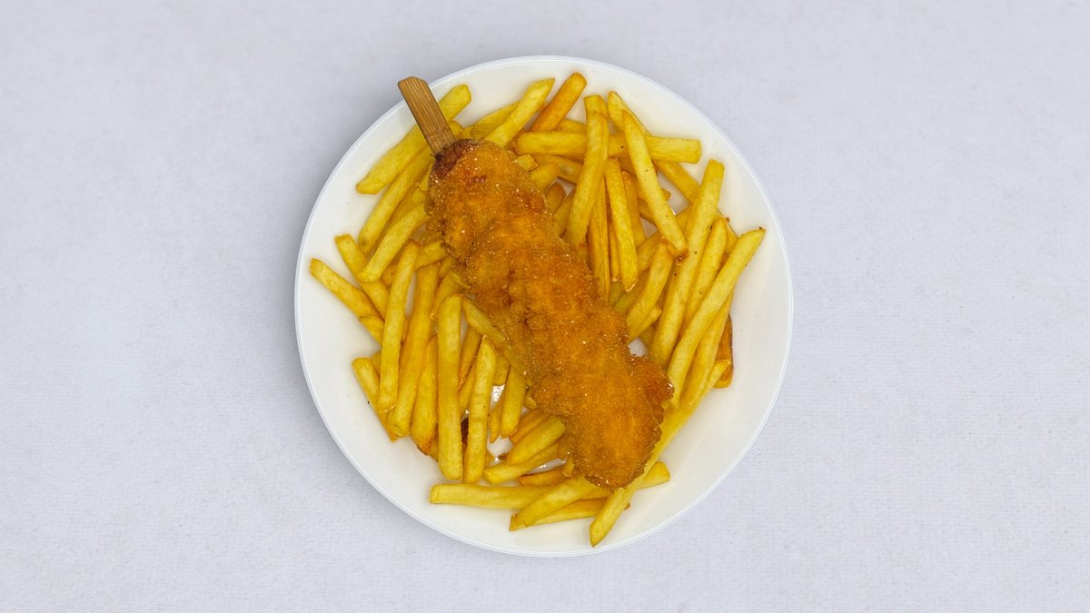 Udka z kurczaka z frytkami i sałatką z marchewką