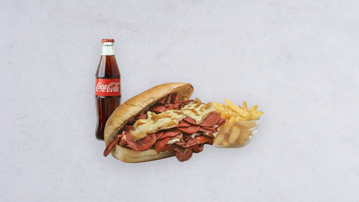 Turecki sucuk, ser żółty, salami, specjalny ogórek konserwowy, sałata lodowa, pomidor