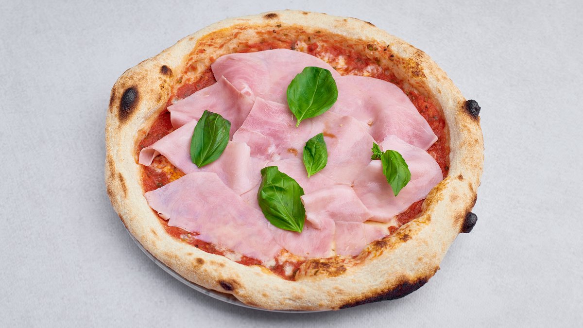 Mozzarella fior di latte,kremowe pesto,prosciutto cotto,pomidorki confit,parmezan,bazylia