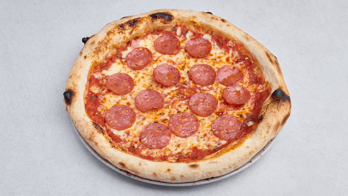 Mozzarella fior di latte, sos pomidorowy San Marzano, Spianata piccante,miód czosnkowy,parmezan,bazylia