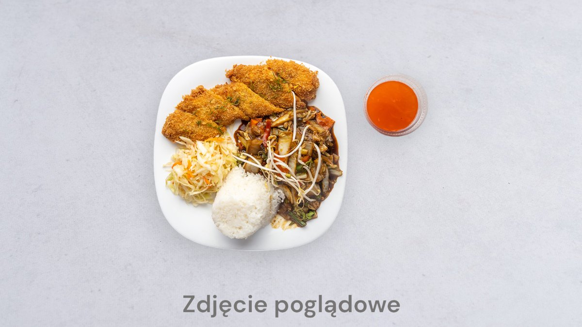 1 szt. sajgonka vege, 1 szt. sajgonka mięsna, 2 szt. kurczak w cieście