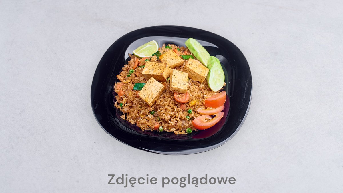 Danie podawane jest z makaronem ryżowym, tofu, sos tamaryndowy