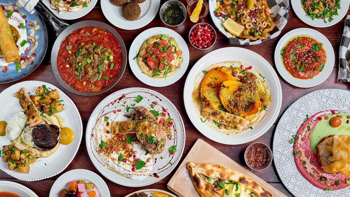 1. Hummus z burakiem, zhoug, ser feta 2. Baba ghanoush i dolma 3. Fatteh 4. Hummus & ful madames 5. Kibbeh 6. Fatayer ze szpinakiem Sosy - Sambal i Zhoug Manakish z za'atarem