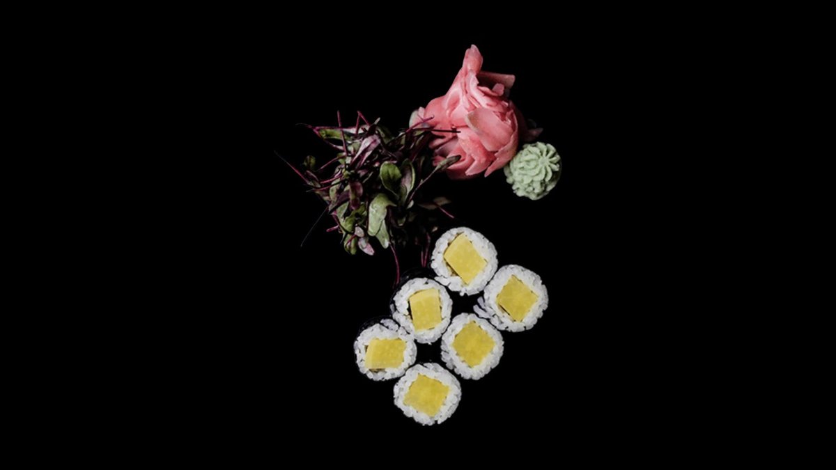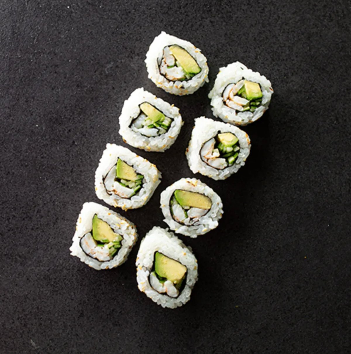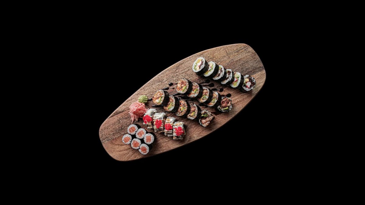 18 szt. 2x kanpyo nigiri, 2x awokado nigiri, 6x awokado maki, 8x vegetarian roll