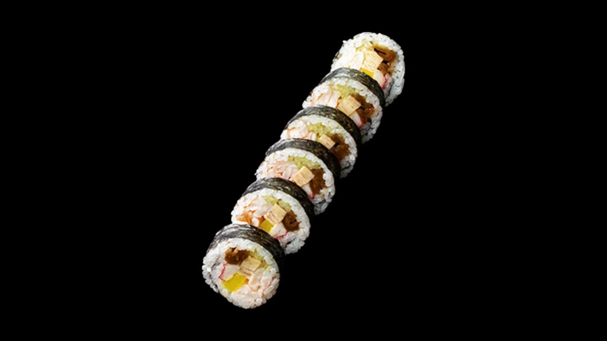 Surimi, ogórek, japoński omlet, żółta rzepa, tykwa