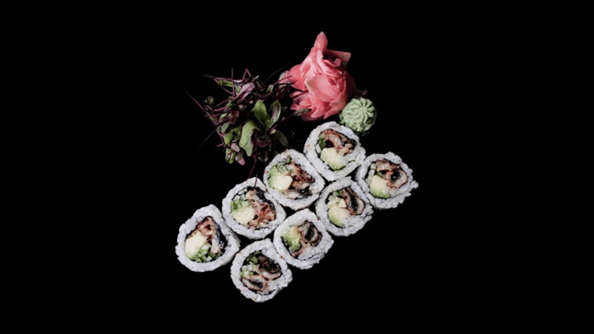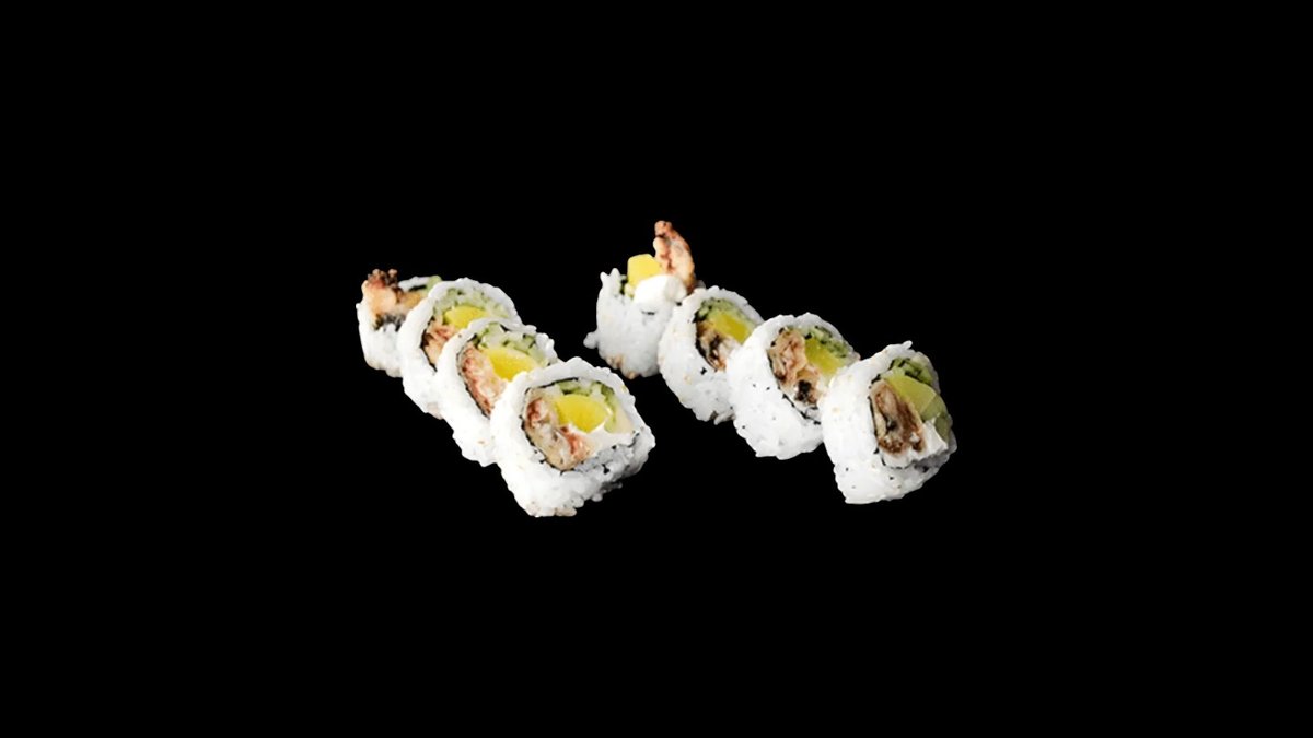 8 szt. Węgorz w tempurze, serek philadelphia, żółta rzepa, awokado, ogórek