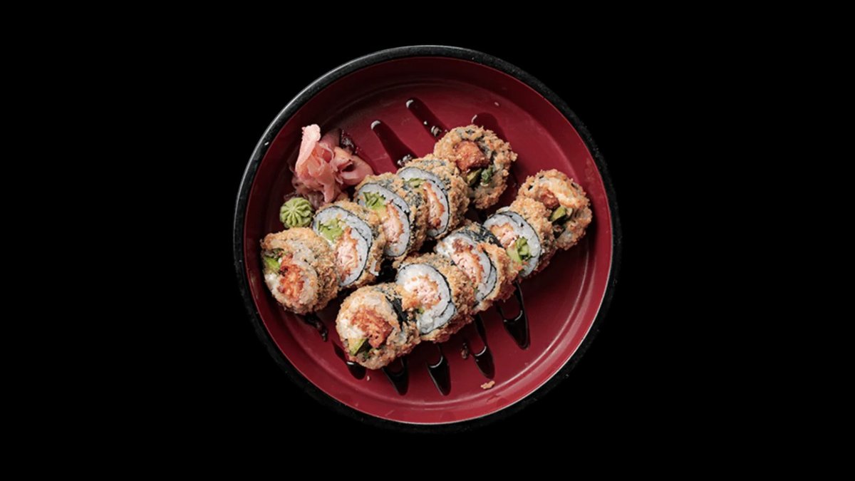 10 szt. Łosoś w tempurze, serek philadelphia, awokado, ogórek, rolka panierowana w tempurze
