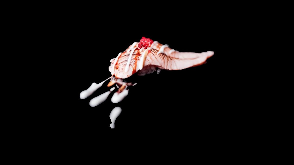 Krewetki w tempurze, ogórek, żółta rzepa, parmezan, tobiko