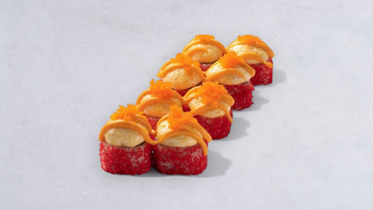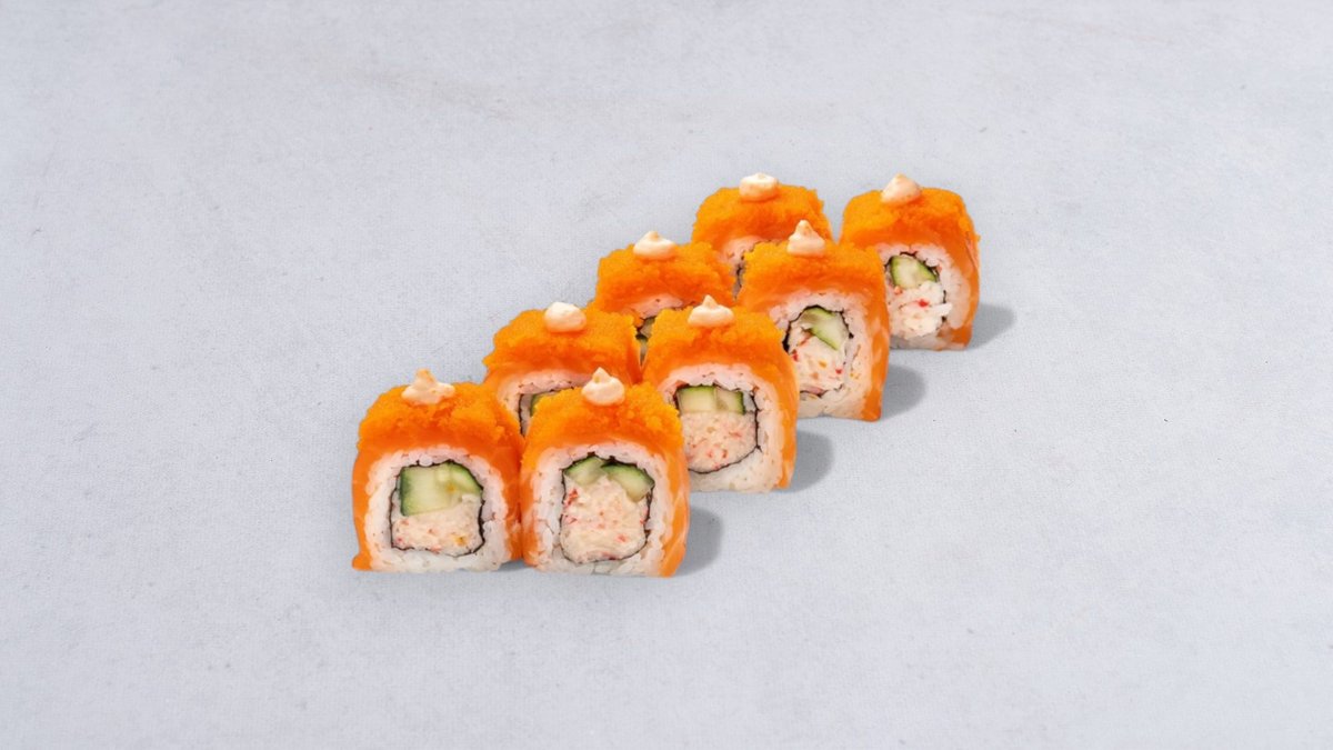 krewetka tempurze, ser philodelphia, ogorek, masago, spice.