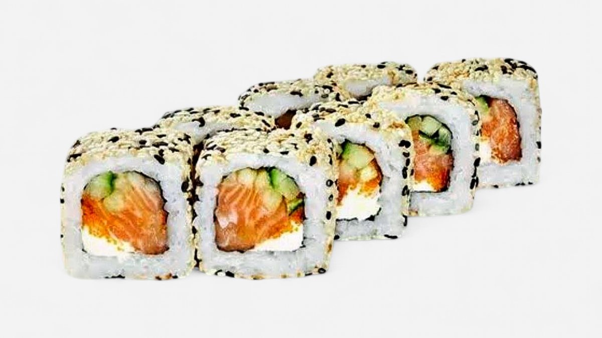 8szt. ryz, ogorek, tykwa, pieczonym łosos, sos unagi, sezam.