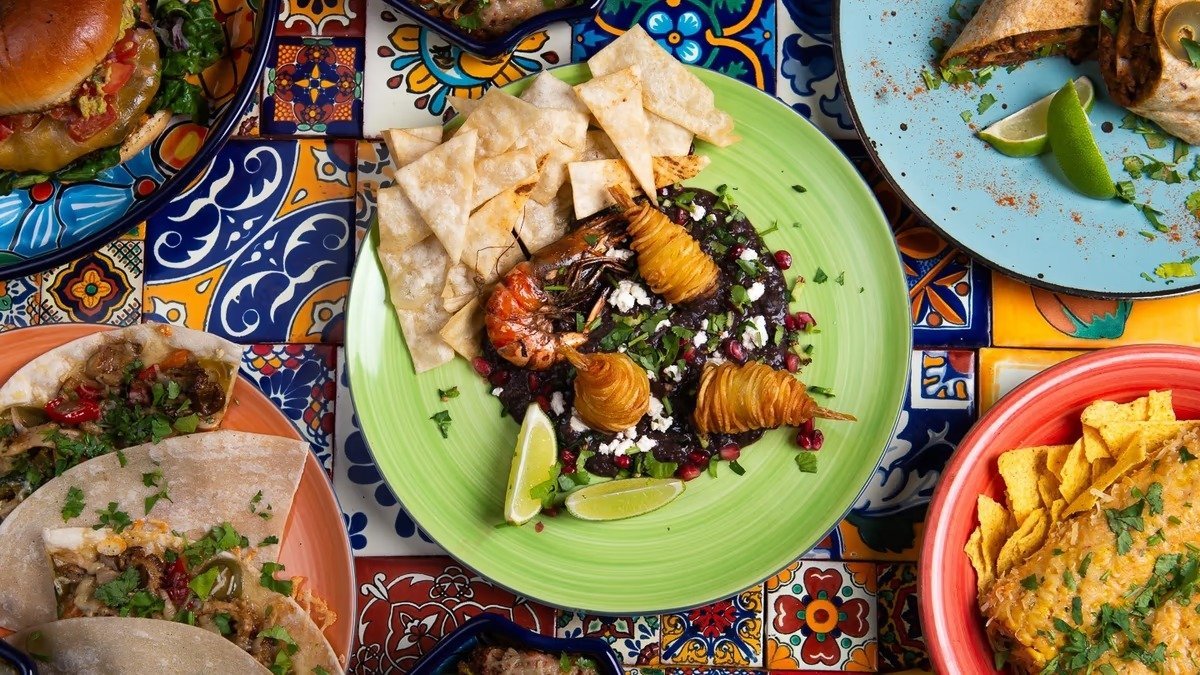 Restauracja meksykańska z obsługą przy ladzie serwująca tacos i burritos w nowoczesnym wnętrzu z modnymi malowidłami ściennymi