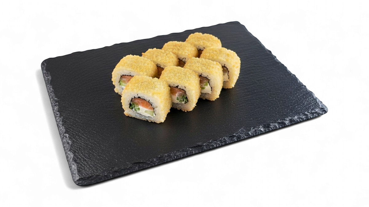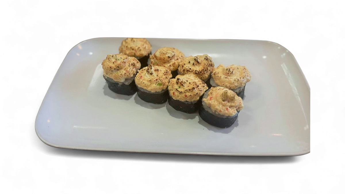 22 szt. 6x futomaki paluszek krabowy w tempurze, 8x California maślana w tempurze, 8x hosomaki kanpyo w tempurze. Zdjęcie poglądowe