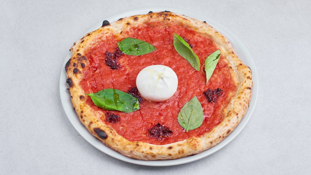 Pomidory san marzano, burrata, nduja, miód chilli, bazylia.