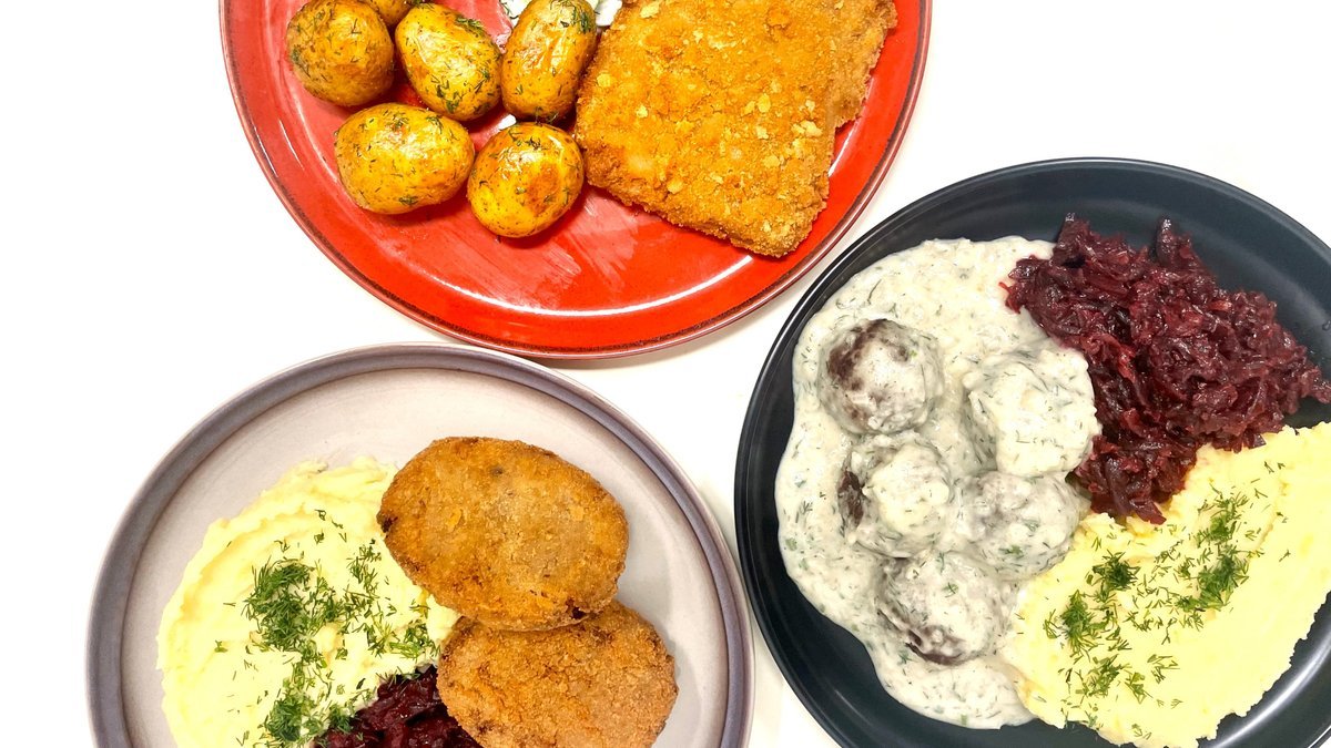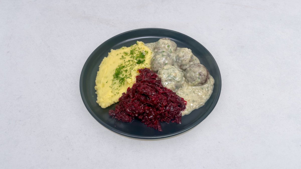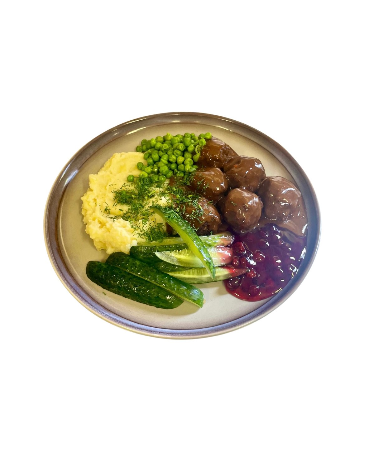 klopsiki sojowe w sosie pieczeniowym/blanszowany groszek/ słodka żurawina