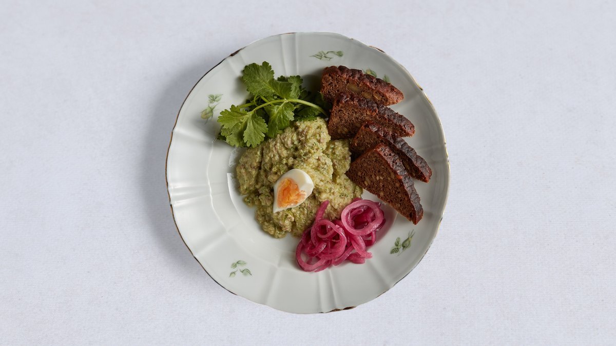 Mielony śledź, cebula, masło podawany z chlebem