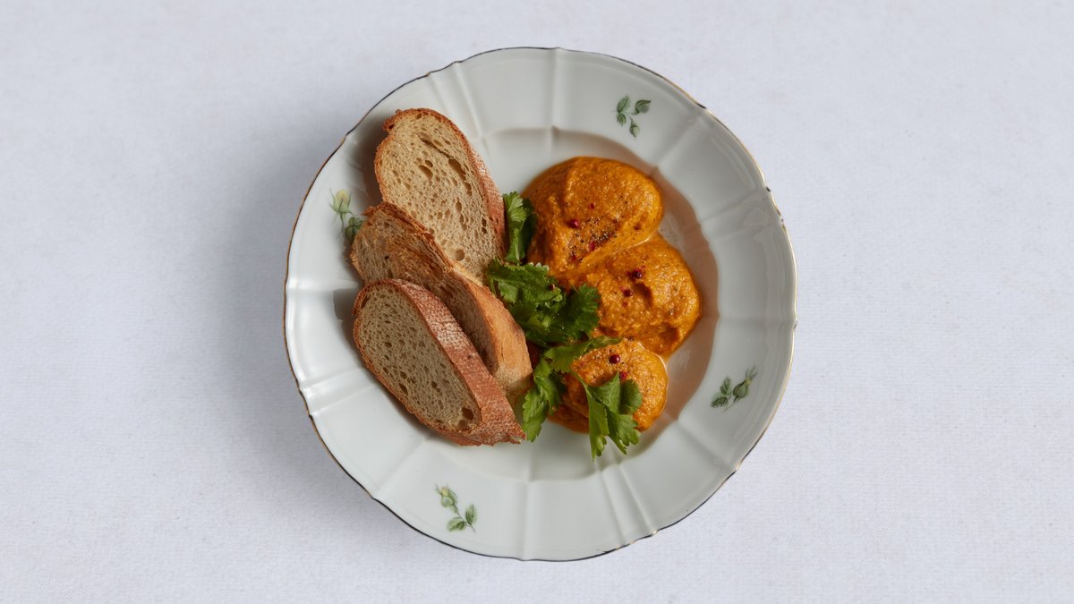 Papryka, bakłażan, cebula, czosnek, podawane z pieczywem