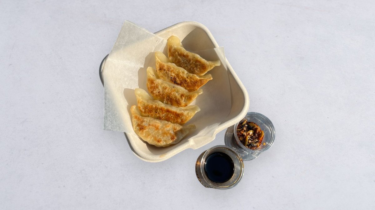 10 szt. Lekka i aromatyczna opcja! Te delikatne pierożki kryją w sobie farsz z chrupiącej kapusty, słodkiej marchewki i cebuli. Podajemy je z pikantnym olejem chili i wyśmienitym dressingiem, tworząc idealną wegetariańską przekąskę