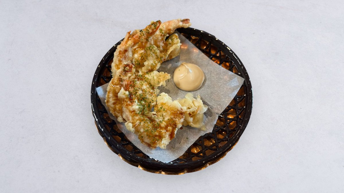 5 szt. Delikatne i soczyste krewetki w chrupiącej tempurze, podane z kremowym majonezem sojowym, słodko-słonym sosem teriyaki i orzeźwiającym piklowanym imbirem. Idealne jako przystawka lub dodatek do dania głównego