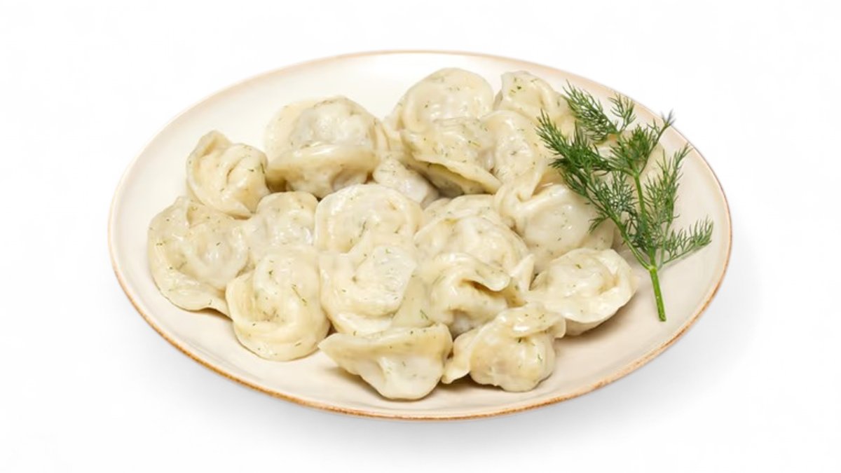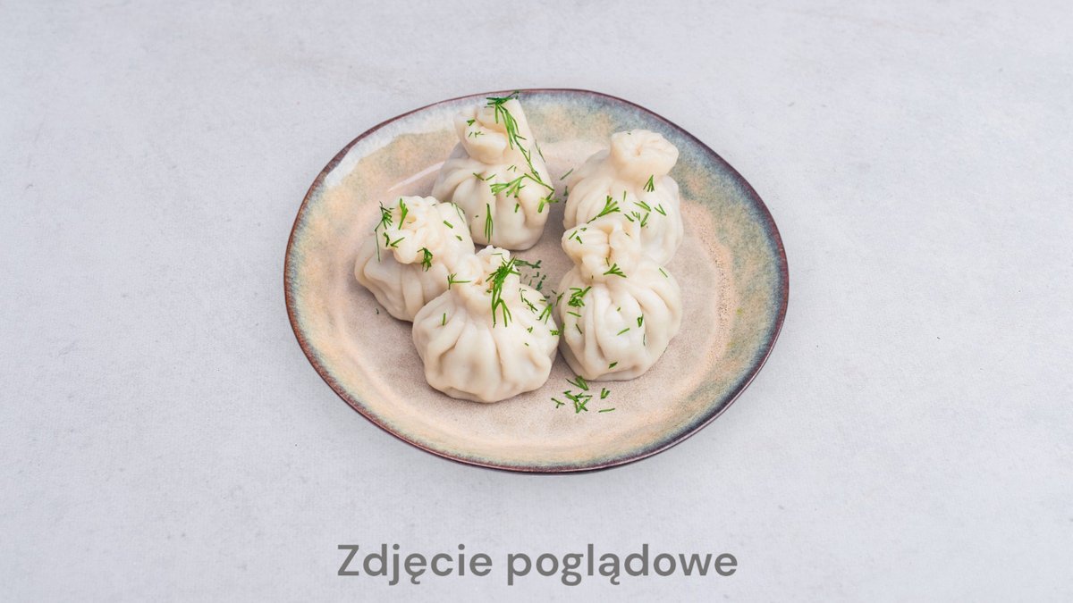 Porcja zawiera 5 szt. Soczyste pielmieni wieprzowe, rosół, natka pietruszki