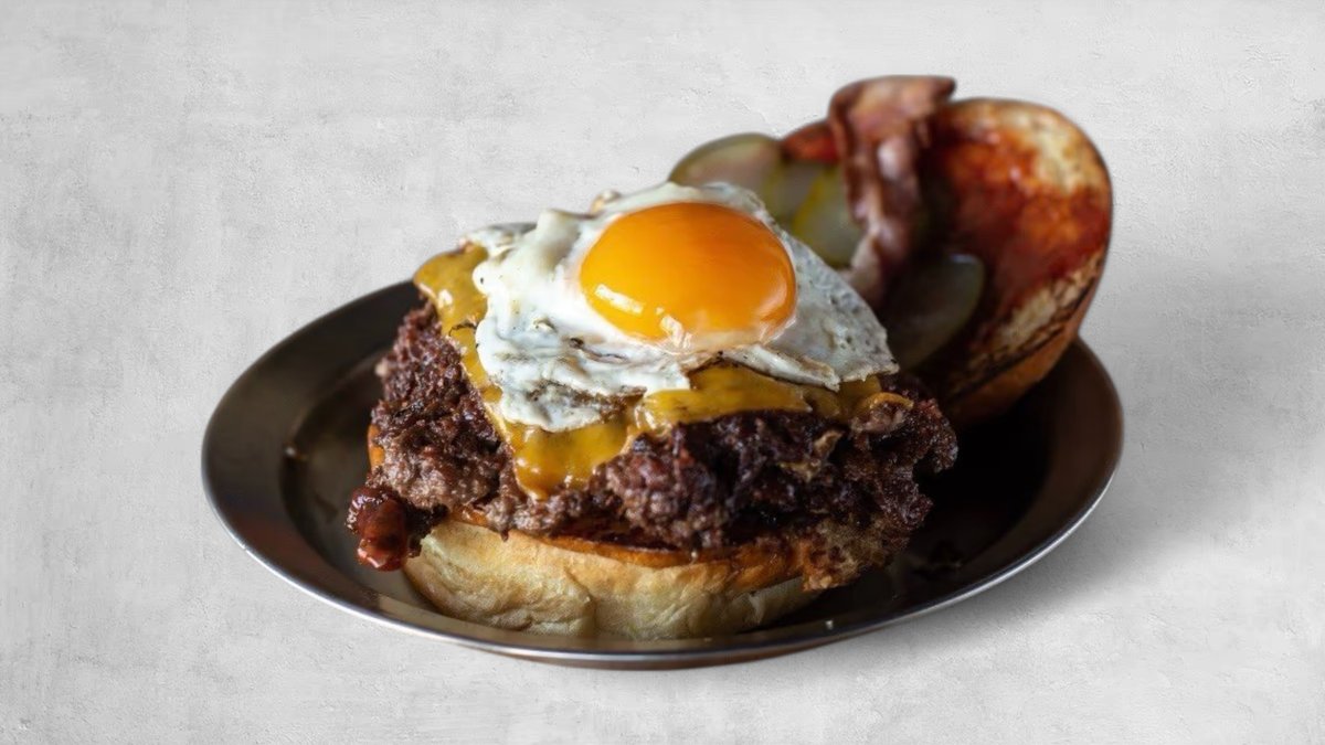 wołowina, bekon, ekologiczne jajko sadzone, ser cheddar, bułka brioche, homemade majonez (musztarda dijon, miód)