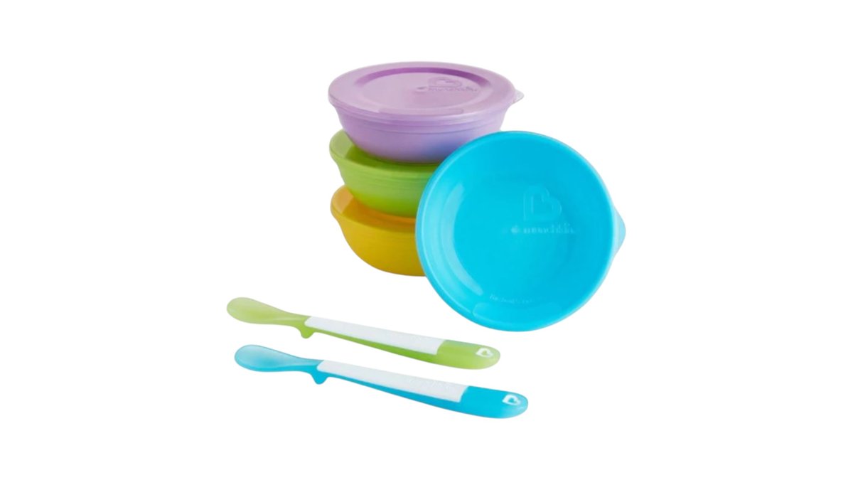 Munchkin Zestaw 4 miseczek z pokrywką + 2 łyżeczki