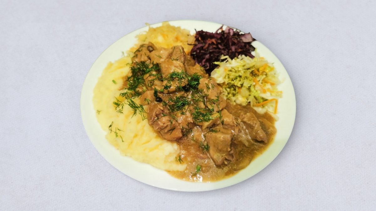 Gulasz wieprz.z pieczarkami i cebulą + KRUPNIK