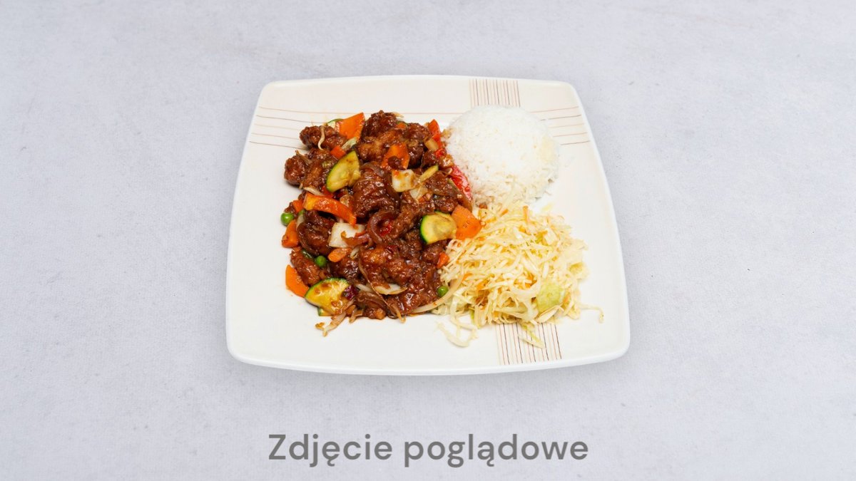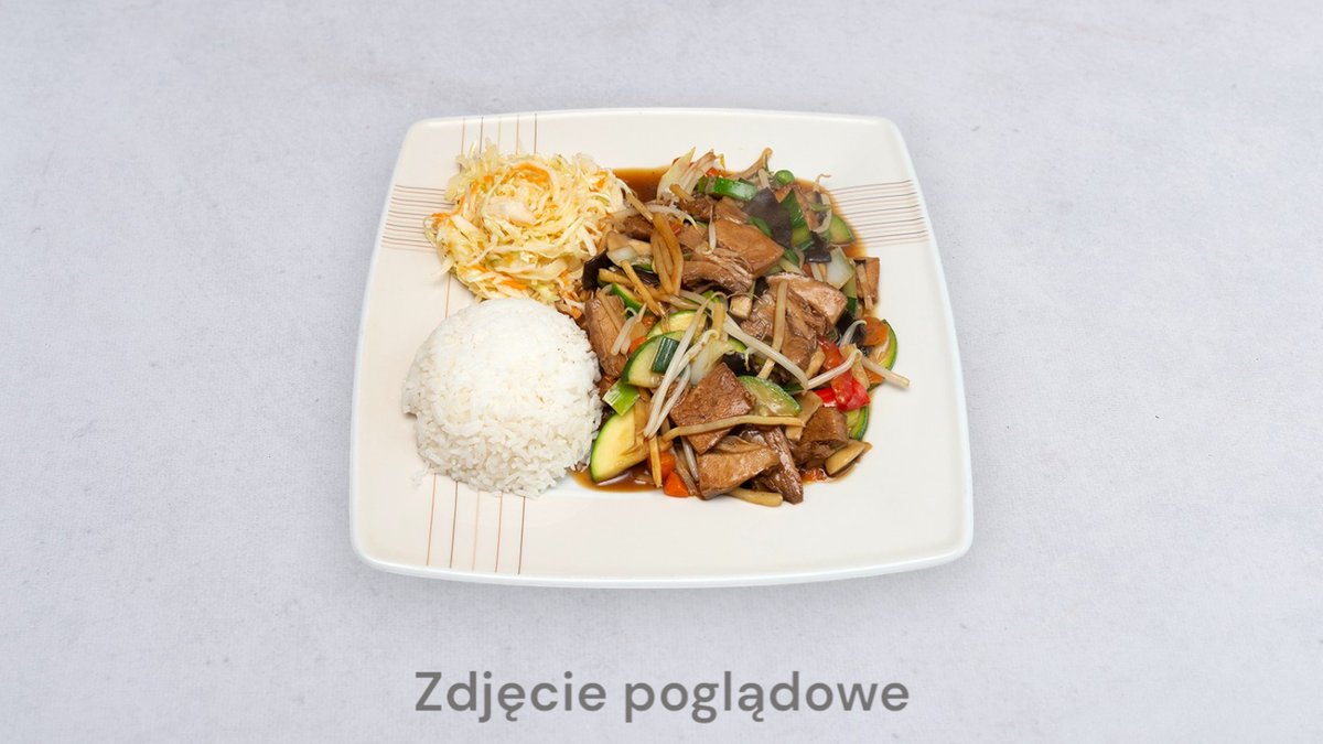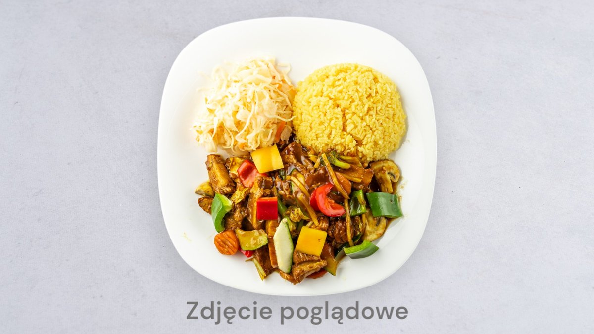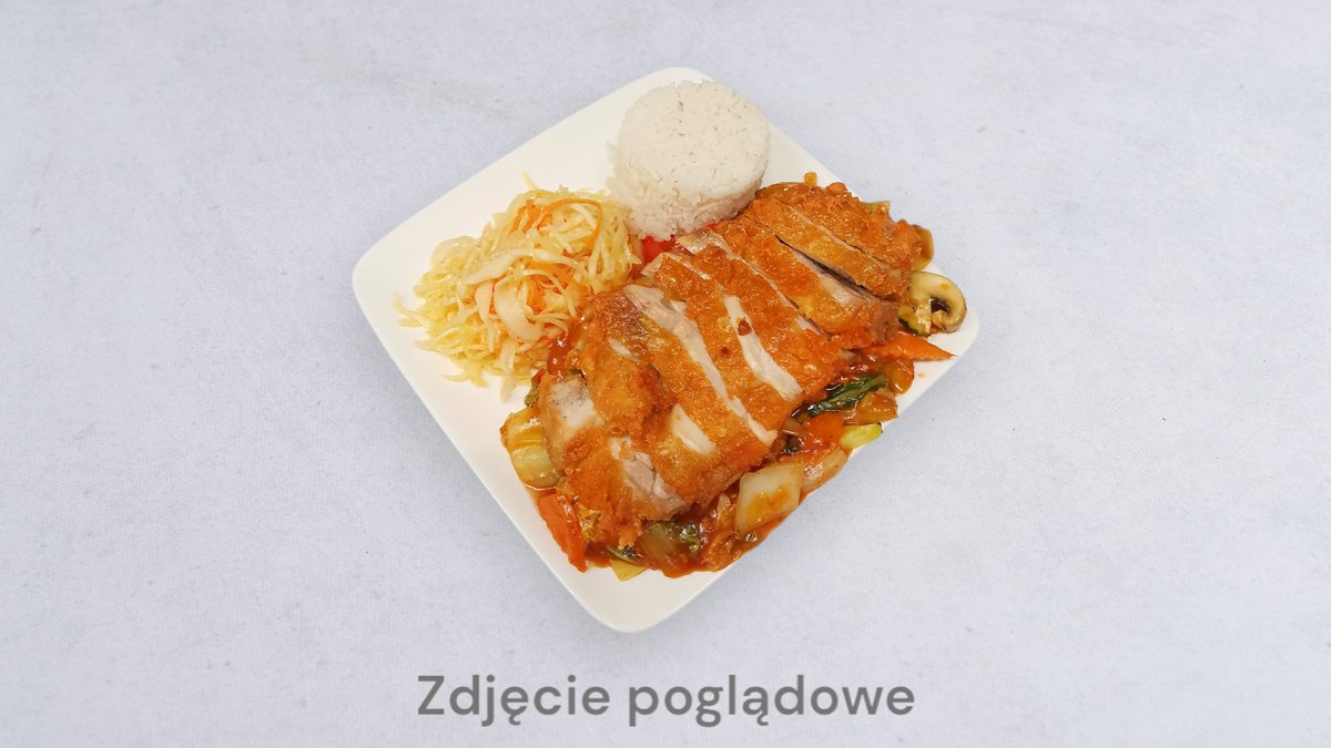 Wszystkie dania podawane są z ryżem i surówką; możliwość wymiany ryżu na frytki, ryż smażony lub makaron smażony za dopłatą 4 zł;