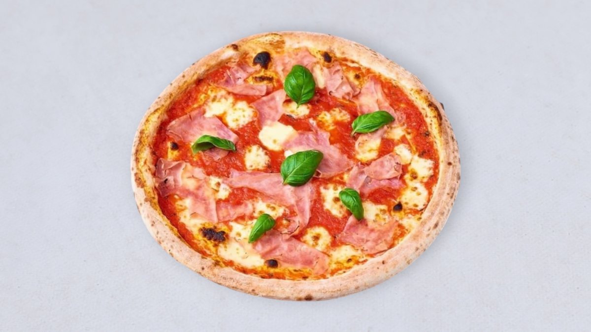 sos pomidorowy, mozzarella fior di latte, prosciutto cotto