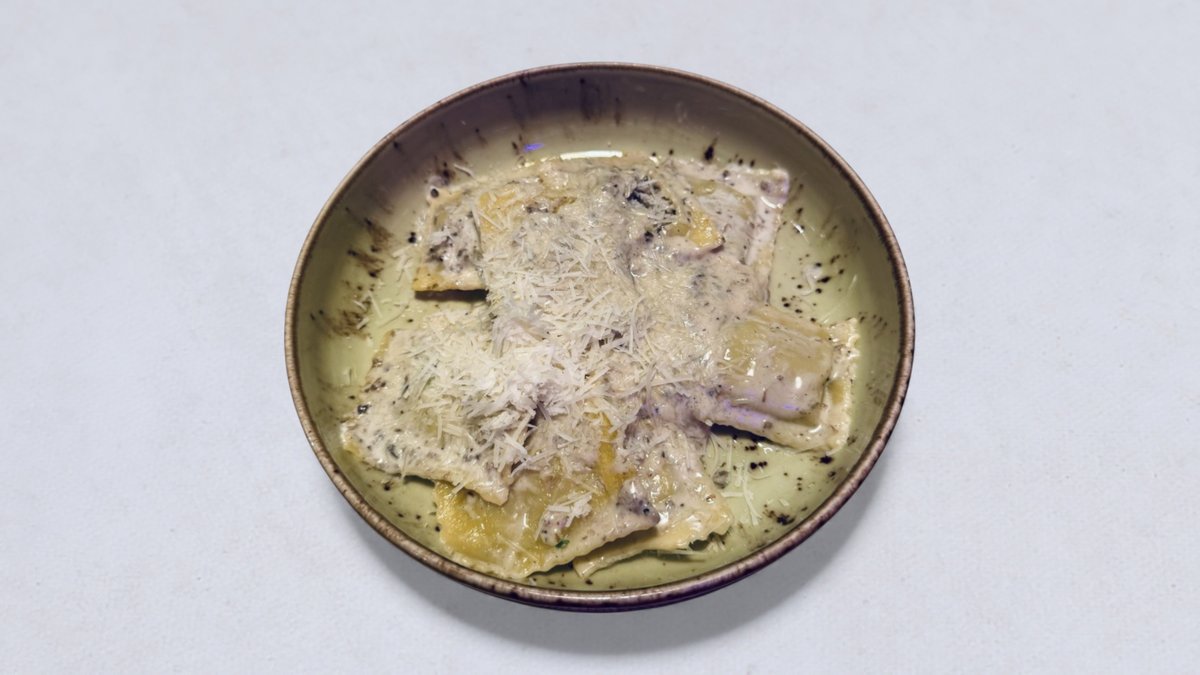 ravioli, śmietanka, pasta truflowa, grana padano