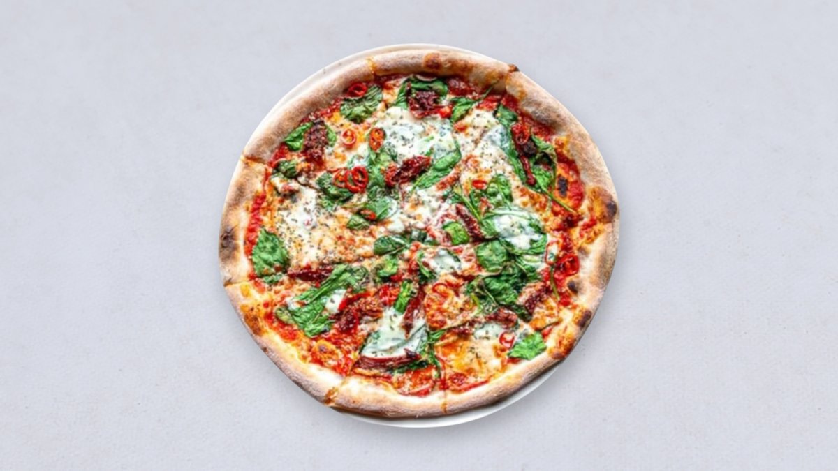 sos pomidorowy, mozzarella fior di latte, mascarpone, suszone pomidory, szpinak