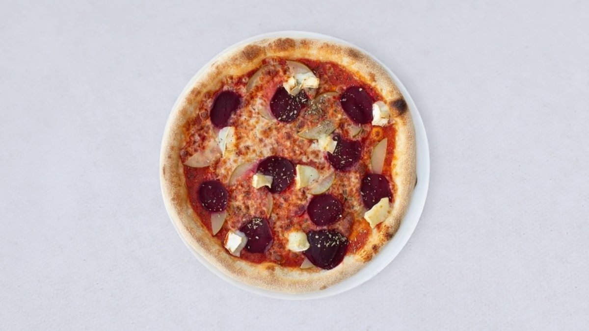 sos pomidorowy, mozzarella fior di latte, gruszka, pieczony burak, kozi ser