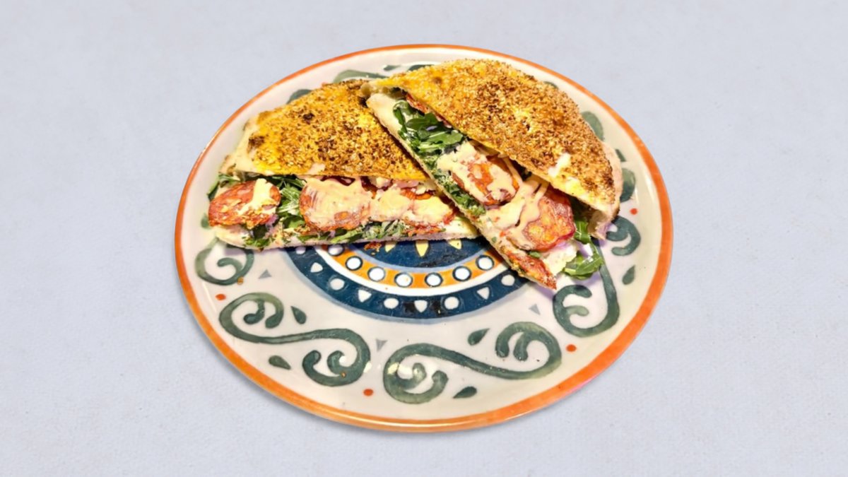 panini, mascarpone, gorgonzola, rukola, salami piccante, majo piccante, sezam